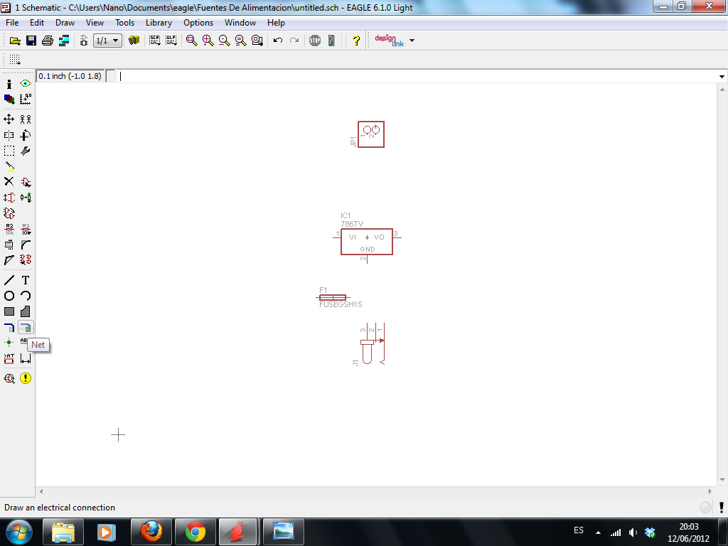 Ya tenemos listos todos los componentes que necesitamos para nuestro esquema y los hemos colocado en el area de trabajo de forma que nos sea comodo conectarlos entre si.